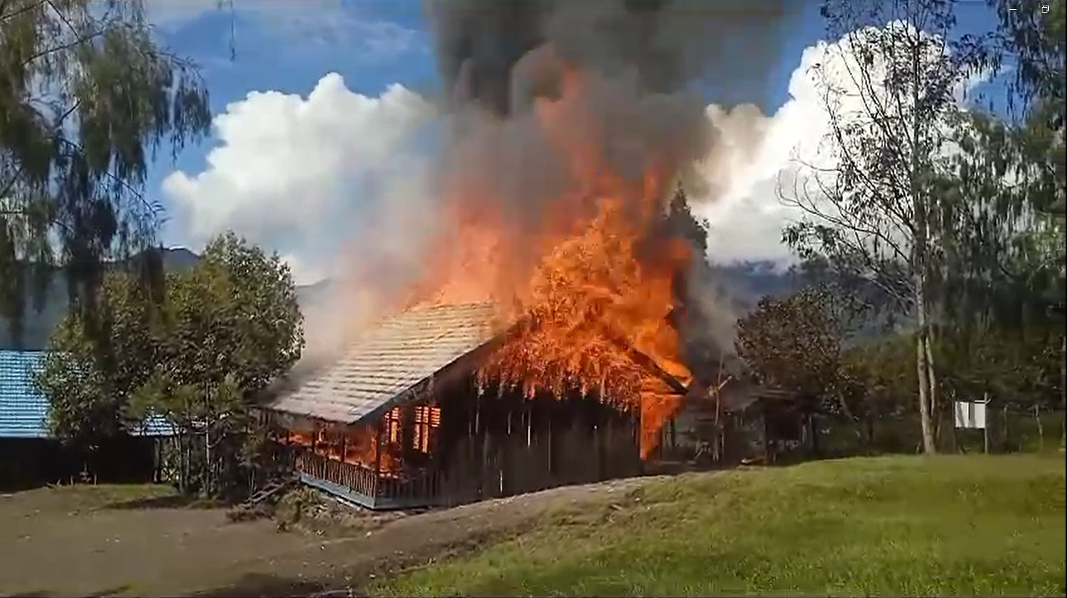 Katapublik Papua, Gerombolan Organisasi Papua Merdeka (OPM) kembali melancarkan aksinya brutalnya dengan membakar bangunan Sekolah Menengah Pertama (SMP) Negeri Okbab yang terletak di Kampung Borban, Distrik Okbab, Kabupaten Pegunungan Bintang, Provinsi Papua Pegunungan, Sabtu (13/07/2024) sekitar pukul 11.30 WIT.