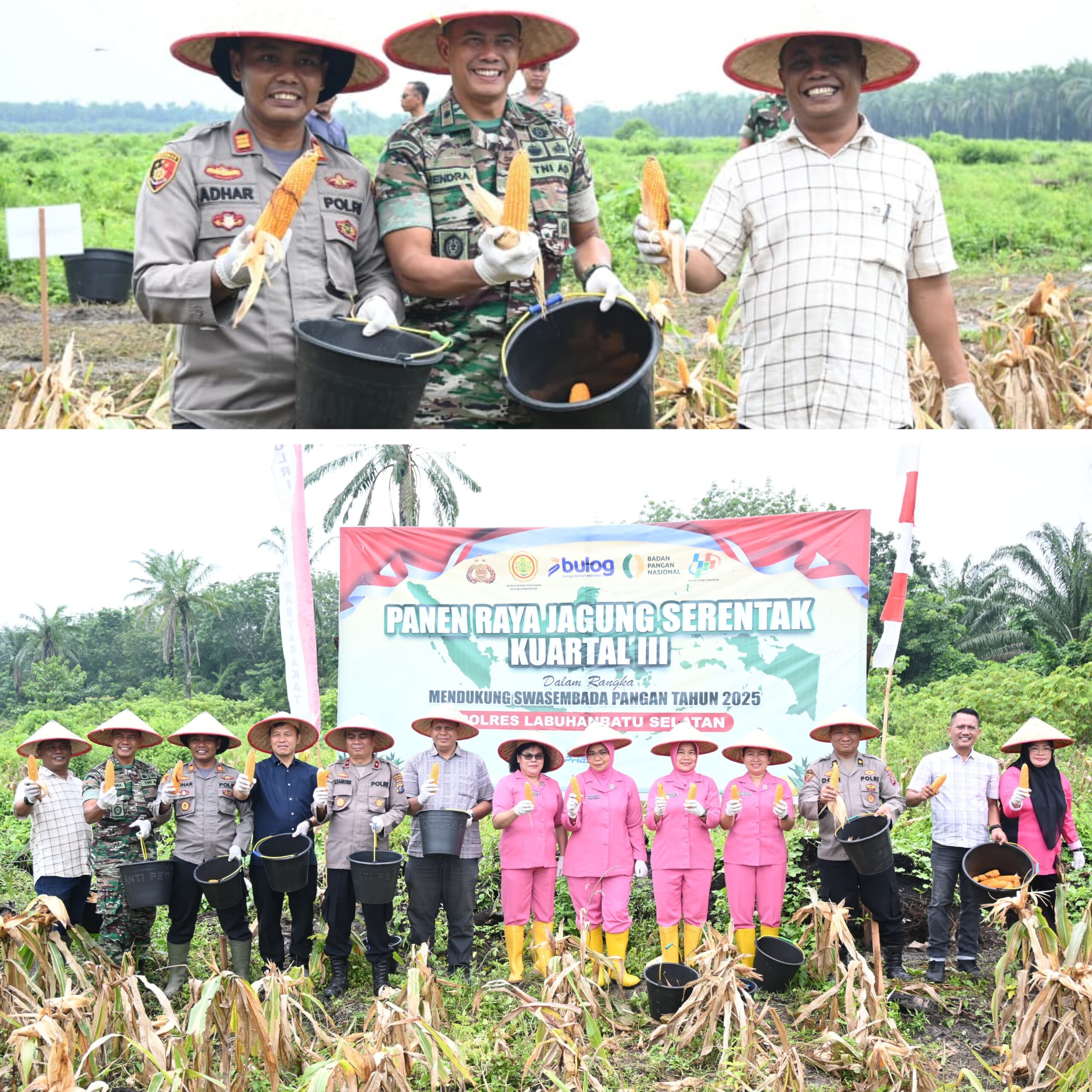 Labuhanbatu Selatan–Kapolres Labuhanbatu Selatan, AKBP Aditya S.P. Sembiring M, S.I.K., yang diwakili Wakapolres, KOMPOL Ramsen Samosir, S.H., M.H., bersama unsur Forkopimda melaksanakan kegiatan Panen Raya Jagung Serentak Kuartal III Tahun 2025 di Dusun Sumberjo, Desa Asam Jawa, Kecamatan Torgamba, Kabupaten Labuhanbatu Selatan, pada Sabtu (27/9/2025).