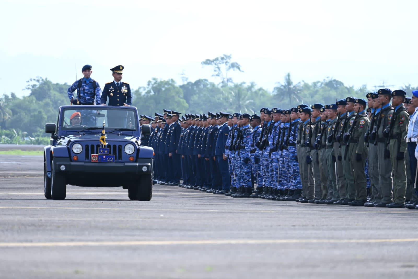 Bertindak selaku Inspektur Upacara (Irup) Panglima Komando Operasi Udara II Marsda TNI Deni Hasoloan S., dan Komandan Upacara (Danup) Pabandyaops Sops Kaskoopsud II Letkol Pnb Deharday Nugraha G, M.A.P., serta segenap personel TNI Angkatan Udara Gabungan Makassar yang terdiri dari Komando Operasi Udara II, Komando Sektor II, Lanud Sultan Hasanuddin, dan Wing Komando II Kopasgat.