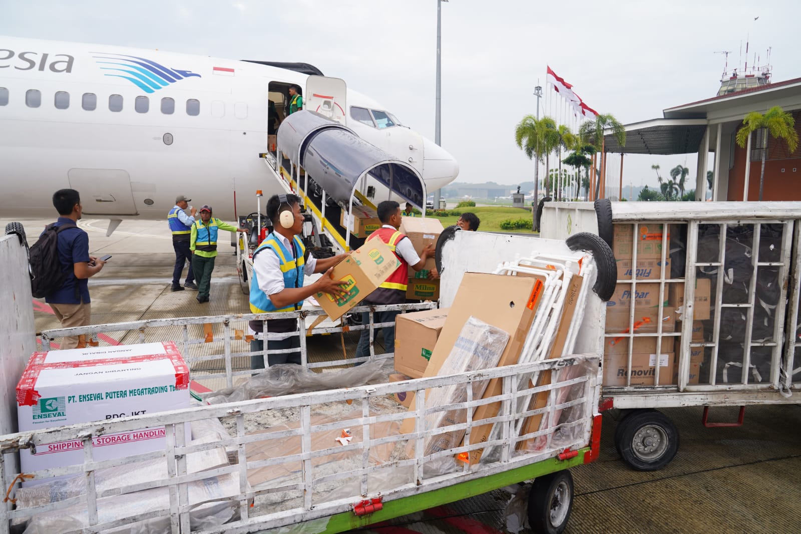 Dua pesawat komersil Garuda yang dicarter berjenis cargo dan penumpang siap untuk menerbangkan ke Myanmar dengan membawa barang-barang dan delegasi yang dipimpin oleh Menteri PMK Pratikno bersama 65 orang Tim Inasar dan Emergency Medical Team (EMT) serta logistik yang akan bertugas di daerah terdampak bencana.