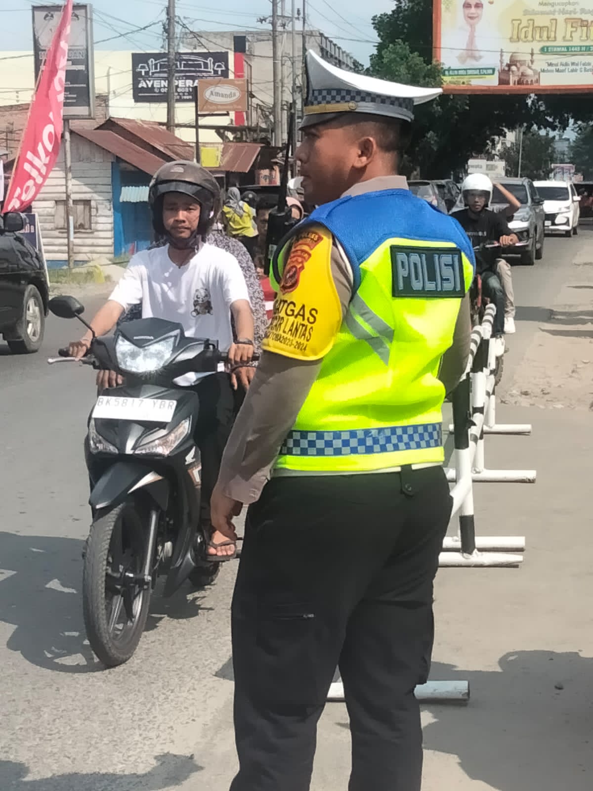 Yang mana diketahui pantauan Wartawan katapublik.co.id, Satlantas Polres Labuhanbatu tampak melaksanakan pengaturan arus lalu lintas di depan Suzuya Mall Rantauprapat di Jalan SM. Raja, Bakaran Batu, Kecamatan Rantau Selelatan, Kabupaten Labuhanbatu, Sumatera Utara. Sabtu, (13/04/2024).