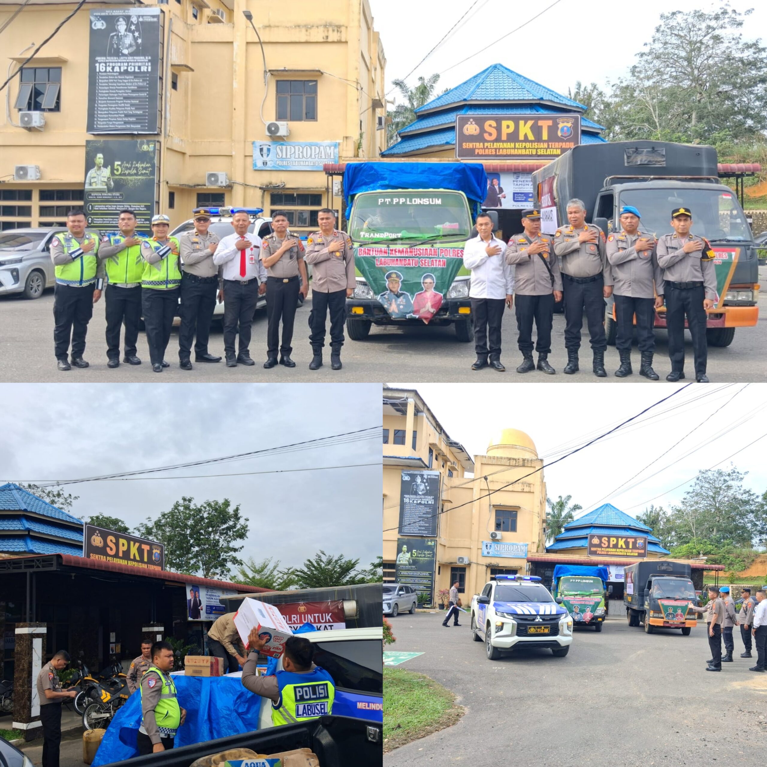 Labuhanbatu Selatan—Dari relung hati yang paling dalam,gelombang kepedulian kembali mengalir dari Polres Labuhanbatu Selatan.Tidak sekadar sebagai institusi penegak hukum,namun sebagai saudara sebangsa yang terpanggil untuk hadir di tengah duka dan pemulihan.Pada Senin pagi (8/12/2025) sekitar pukul 09.00 WIB,halaman Mapolres Labuhanbatu Selatan menjadi saksi kehangatan dan empati,saat Bantuan Sosial (Bansos) Kemanusiaan Tahap III resmi diberangkatkan menuju Kabupaten Tapanuli Tengah.