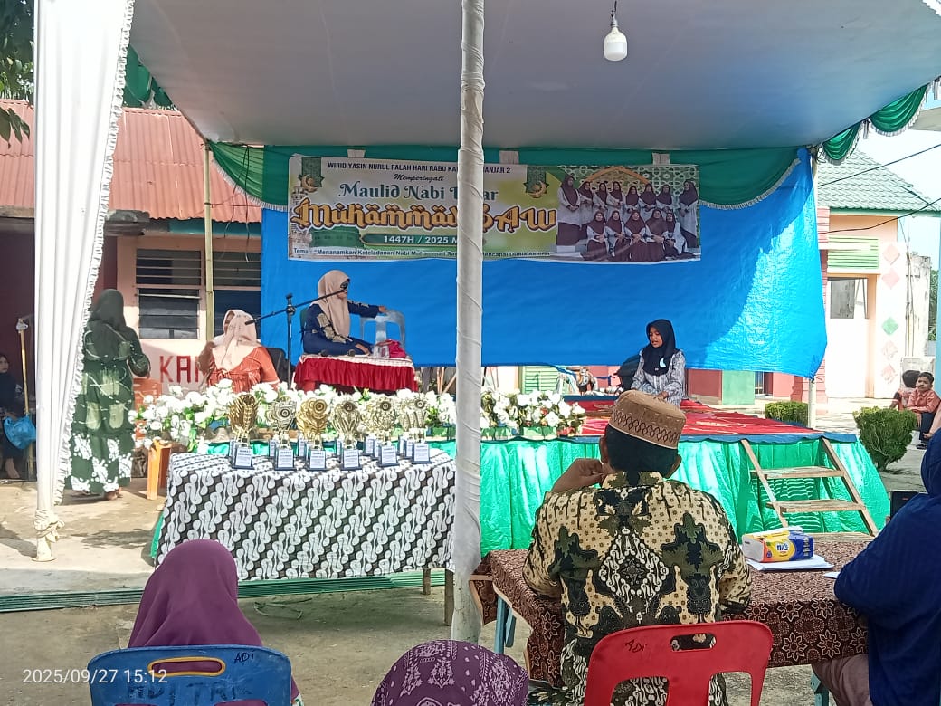 Labuhanbatu Selatan–Dalam rangka menyambut peringatan Maulid Nabi Muhammad SAW 1447 H, Perwiritan Yasin Nurul Falah Rabu Kampung Banjar Dua, Kecamatan Kota Pinang, melaksanakan berbagai perlombaan bernuansa islami pada Sabtu (27/9/2025).