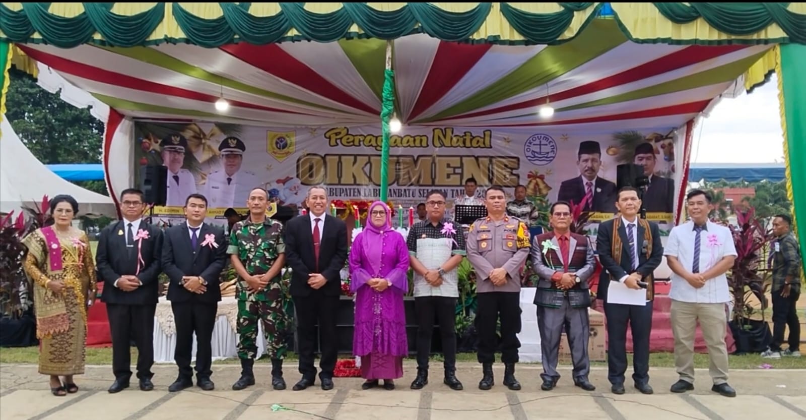 Katapublik Labusel, Pemerintah Kabupaten Labuhanbatu Selatan (Pemkab Labusel), menggelar perayaan Natal Oikumene (Gabungan) di Lapangan SBBK, Kecamatan Kotapinang. Kamis, (12/12/2024).