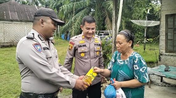 Katapublik Labuhanbatu, Kapolsek Bilah Hilir, AKP SM Lumban Gaol bagikan hasil panen ikan lele yang dibudidayakannya di depan kantor Polsek Bila Hilir (Bihil), kepada warga kurang mampu di Bulan Suci Ramadhan.
