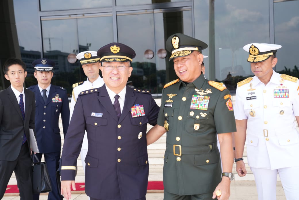 Katapublik Jaktim, Panglima TNI Jenderal TNI Agus Subiyanto menerima Courtesy Call (CC) Jenderal Yoshida Yoshihide Kepala Staf Gabungan Pasukan Bela Diri Jepang (Chief of Joint Staff Japan Self Defence Force) dengan suatu prosesi upacara penyambutan yang didahului dengan jajar kehormatan. Acara bertempat di Mabes TNI, Cilangkap, Jakarta Timur, Jumat (25/04/2025).