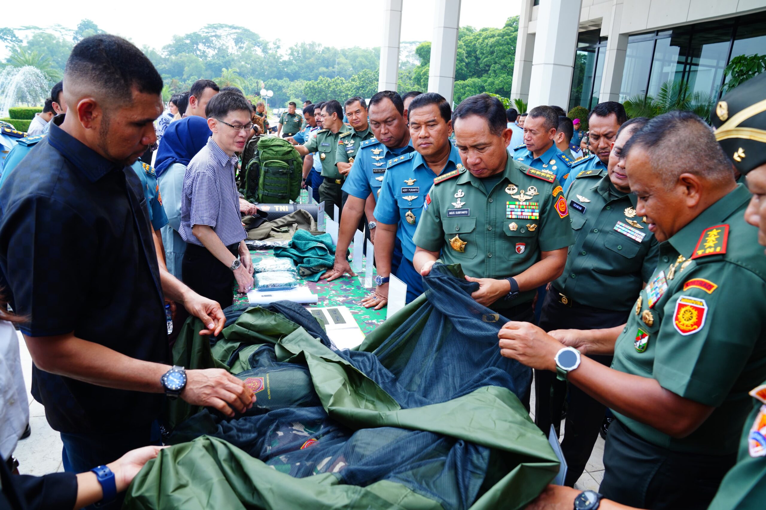 Panglima TNI memperhatikan dengan seksama presentasi dan demonstrasi berbagai perlengkapan operasional termasuk peralatan medis yang dirancang untuk penugasan Dalam Negeri. Beliau juga berkesempatan berdialog dengan para ahli dan personel terkait untuk memastikan tingkat kesiapan yang optimal.