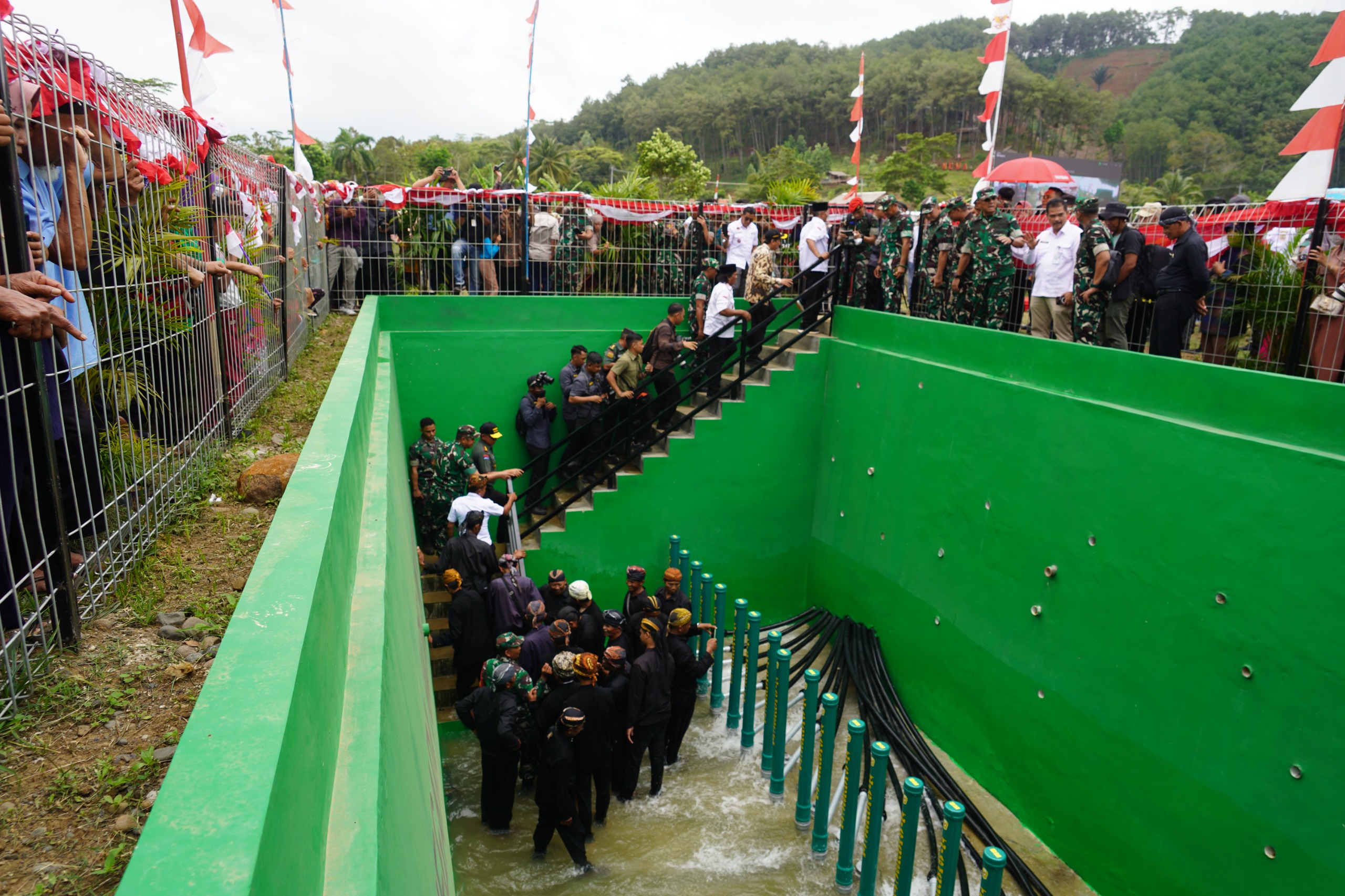 Katapublik Jateng, Panglima TNI Jenderal TNI Agus Subiyanto didampingi Kasad Jenderal TNI Maruli Simanjuntak meresmikan Pompa Hidram Pertanian hasil kerjasama antara TNI dengan Kementrian Pertanian RI bertempat di Desa Tambaknegara, Rawalo, Banyumas, Jawa Tengah, Rabu (9/10/2024).