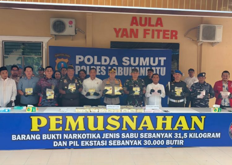 Katapublik Labuhanbatu, Polres Labuhanbatu memusnahkan barang bukti narkotika hasil pengungkapan dua kasus peredaran narkoba yang diduga terkait jaringan internasional dan antarprovinsi. Pemusnahan dilakukan di Aula Yan Piter Polres Labuhanbatu, Jalan MH Thamrin, Rantauprapat, Kamis (12/3/2026).