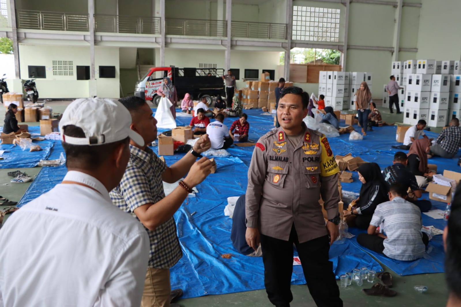 Selanjutnya, Kapolres Labuhanbatu beserta rombongan didampingi Ketua KPU Labuhanbatu Zafar Siddiq Pohan dan komisioner KPU lainnya serta komisioner Bawaslu, bergerak menuju Gedung Serbaguna rumah dinas Bupati Labuhanbatu yang berada di seberang kantor KPU untuk melihat pengecekan dan pengemasan logistik Pemilu tahun 2024.