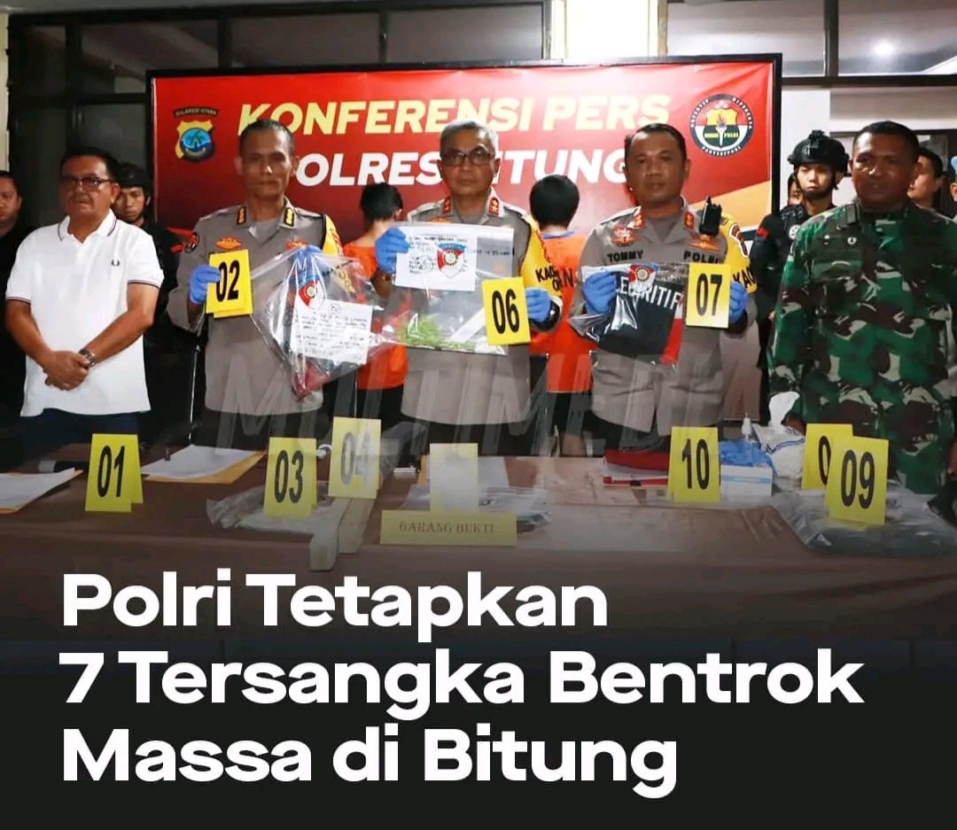 Katapublik Sulut, Polri melalui Polda Sulawesi Utara (Sulut) mengamankan tujuh (7 Tersangka) dalam kasus bentrok yang melibatkan dua organisasi masyarakat (ormas) di Bitung pada Sabtu (25/11/2023).