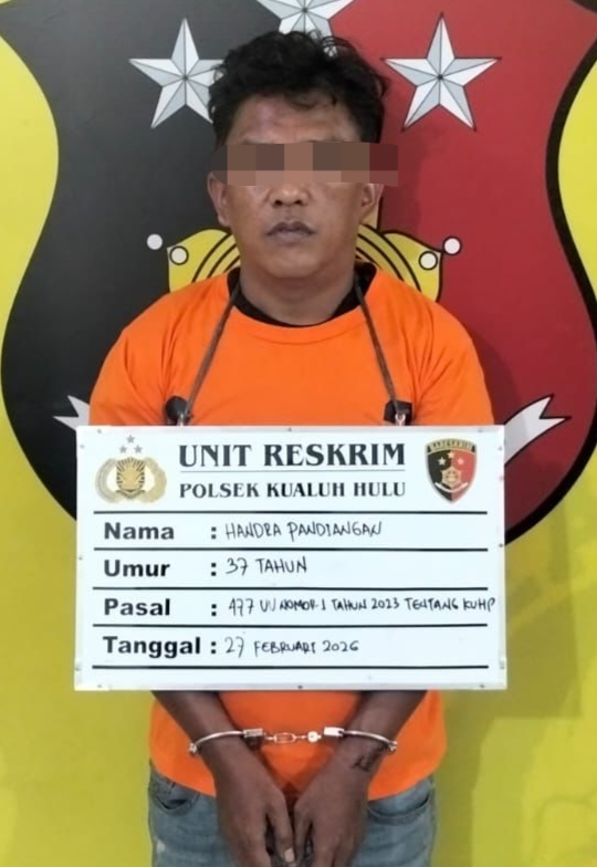Katapublik Labura, Unit Reskrim Polsek Kualuh Hulu, Polres Labuhanbatu, menangkap pelaku tindak pidana pencurian dengan pemberatan (Pasal 477 UU RI No.1 Tahun 2023 tentang KUHP) pada Kamis, 27 Februari 2026 sekira pukul 11.30 WIB di Jalinsum Jalan Jenderal Sudirman, Kelurahan Aek Kanopan Timur, Kecamatan Kualuh Hulu, Kabupaten Labuhanbatu Utara.
