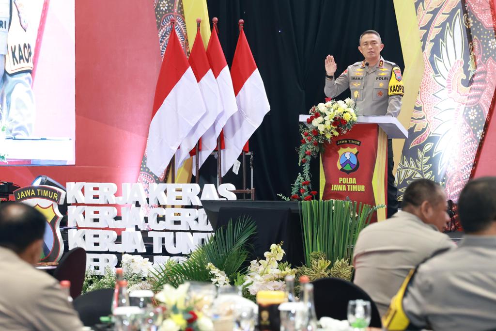 Kapolda Jatim juga mengajak personel yang hadir pada Rakernis tersebut untuk merenungkan arahan Presiden Jokowi dan Kapolri Jenderal Polisi Listyo Sigit Prabowo.