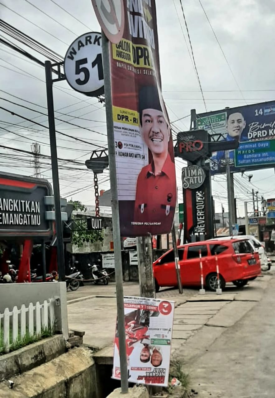“Jangan mentang-mentang punya modal yang kuat dan mampu memasang APK secara berlebihan di seluruh penjuru Kota Makassar, lantas tim pemasangannya seenaknya bertindak menutupi, melepas dan bahkan merusak banner-banner kecil milik para Caleg yang kemampuan finansialnya terbatas. Mari kita sama-sama berjuang mencari simpati masyarakat dengan menggunakan cara-cara yang santun, beretika dan saling menghargai,” tandasnya.