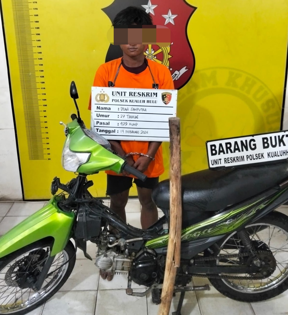 Pada Sabtu (14/2/2026) sekitar pukul 03.00 WIB, pelaku berhasil diringkus. Ia diketahui bernama Dian Sahputra (27), warga Aek Kanopan Timur.