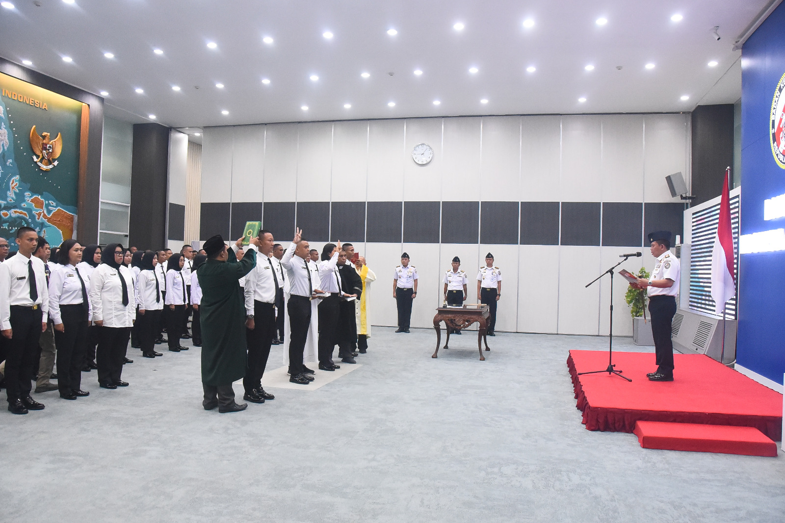 Katapublik Rawamangun, Sebanyak 140 personel Pegawai Pemerintah dengan Perjanjian Kerja (PPPK) yang akan bekerja di kantor Badan Keamanan Laut Republik Indonesia (Bakamla RI), secara resmi dilantik oleh Kepala Bakamla RI, Laksdya TNI Dr. Irvansyah. Pelantikan diadakan di Aula Ary Hasibuan, Mabes Bakamla RI kabupaten Rawamangun. Senin, (29/4/2024).
