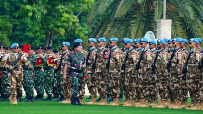 Katapublik Jaktim, Panglima TNI, Jenderal TNI Agus Subiyanto, memberikan amanat dalam upacara pemberangkatan Satgas TNI…