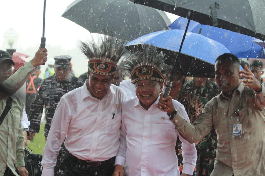 Setibanya di Bandara Mopah Merauke, Wamenhan disambut oleh Menteri Pertanian Andi Amran Sulaiman, Bupati Merauke Romanus Mbaraka, dan Pangdam XVII/Cendrawasih Mayjen TNI Izak Pangemanan. Pada kesempatan itu, Menteri Pertanian memakaikan topi adat Papua kepada Wakil Menteri Pertahanan M. Herindra sebagai simbolis diterimanya di Tanah Papua.