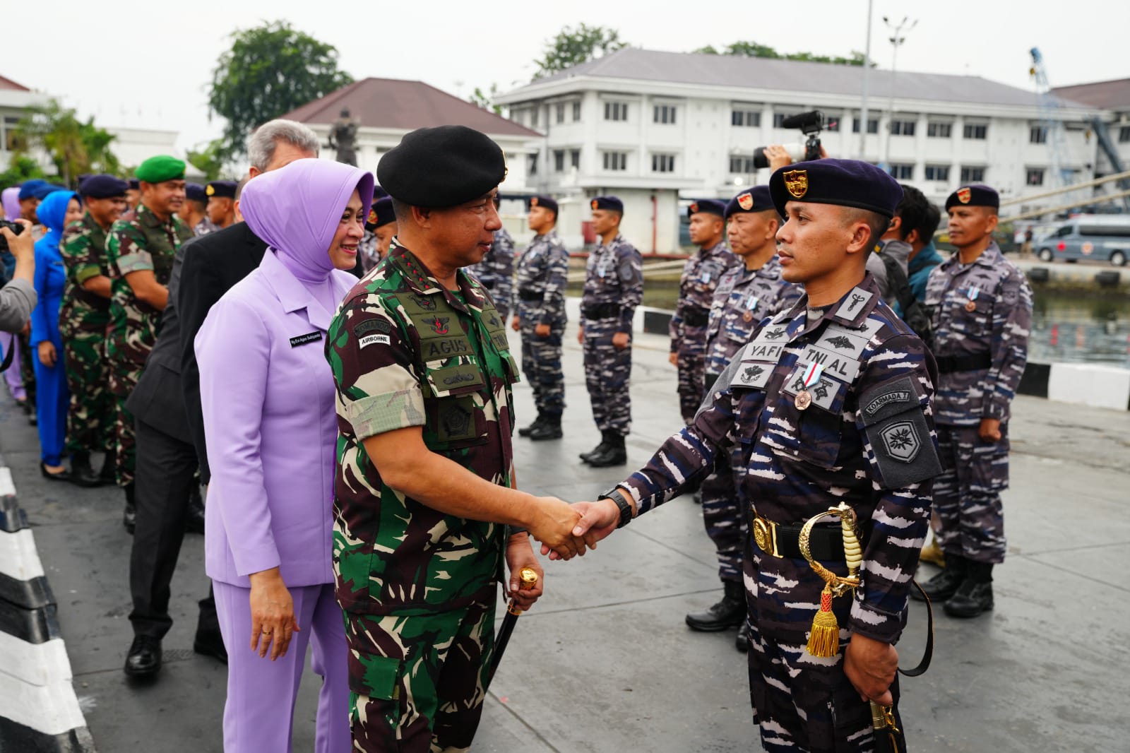 Katapublik Jakarta, Panglima TNI Jenderal TNI Agus Subiyanto, bertindak sebagai inspektur upacara saat menyambut kedatangan KRI Dr. Radjiman Wedyodiningrat-992 seusai mengemban misi kemanusian bantuan korban konflik Gaza di Dermaga Kolinlamil, Jakarta Utara. Jumat, (15/03/2024).