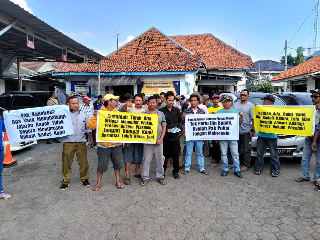 Katapublik Pekalongan, Puluhan warga Desa Wuled, Kecamatan Tirto, Kabupaten Pekalongan, mendatangi Markas Satuan Reserse Kriminal (Satreskrim) Polres Pekalongan Kota pada Jumat, 2 Mei 2025. Mereka membawa spanduk dan menyuarakan tuntutan agar pihak kepolisian segera menindaklanjuti laporan dugaan pungutan liar (pungli) dalam program Pendaftaran Tanah Sistematis Lengkap (PTSL) yang telah dilaporkan sejak Oktober 2024.